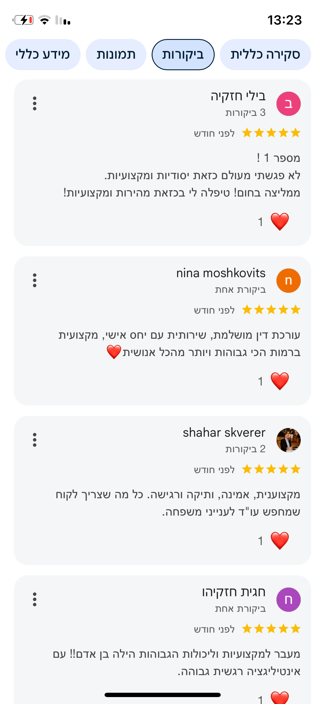 אני מאמינה כי בדיני משפחה, מעבר לפן המשפטי, יש להתייחס בכל מקרה ומקרה לנסיבותיו, לרבות רגשות ותחושות הלקוח.